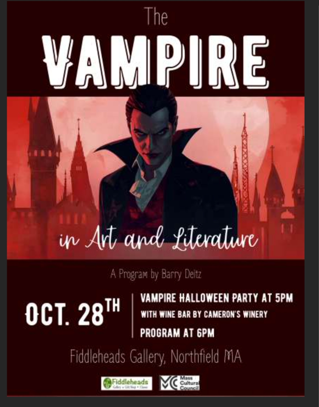 Due to space constraints, we are asking that you register in advance at margedvaa@gmail.com. Please state the number of people in your group, and if you plan to attend the Vampire Party, 5-6 PM, the Barry Deitz program 6 PM, or both. The party and talk are open to all adults. Thank you.