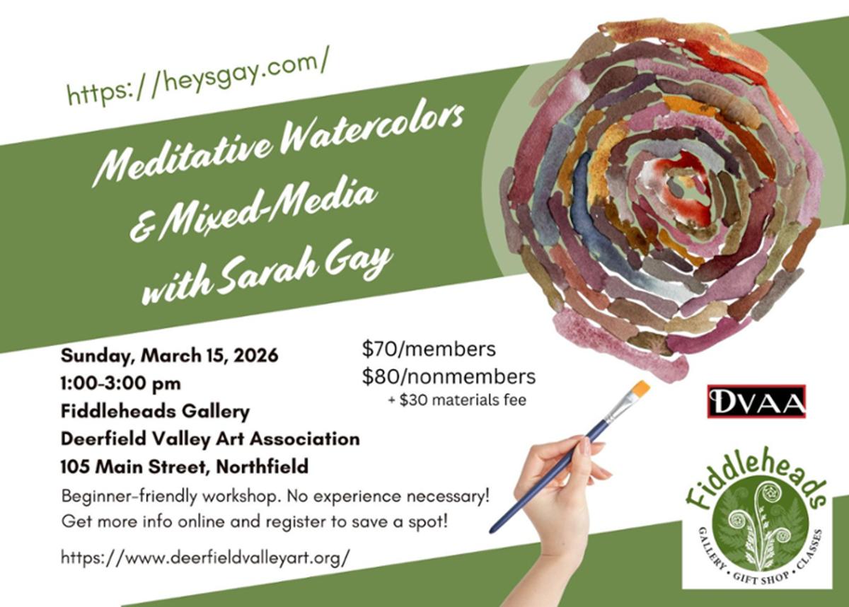 For any questions, please email SarahGayOneill@gmail.com, Subject: Fiddlehead-- Mindful watercolor